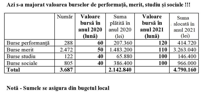 Astfel, conform informațiilor oferite de primarul Viorel Marian Dragomir, într-un mesaj public adresat astăzi brăilenilor, suma alocată pentru Burse de performanță va fi, în anul 2021, dublă față de anul acesta, respectiv 414.720 lei.