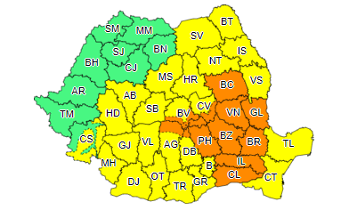 Cod portocaliu pentru județele Brăila și Galați! Județele Constanța și Tulcea rămân sub cod galben.