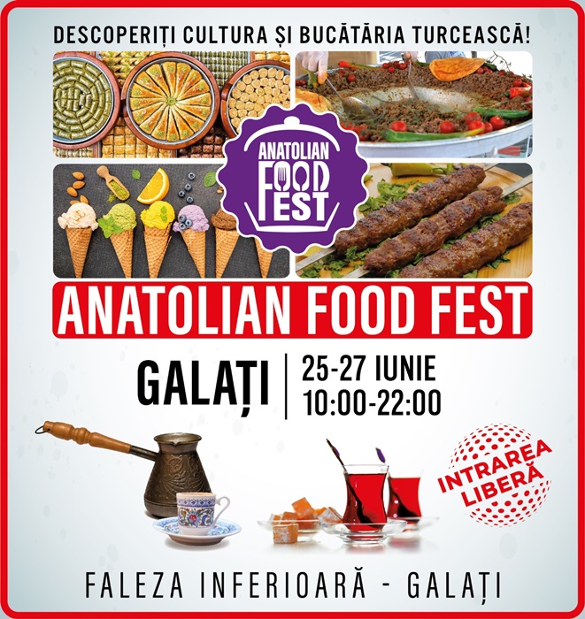 Caravana festivalului ”Anatolian Food Fest” va fi la Galați, în intervalul 25-27 iunie 2021, de vineri până duminică de la ora 10:00 până la ora 22:00, pe Faleza Inferioară din municipiu.