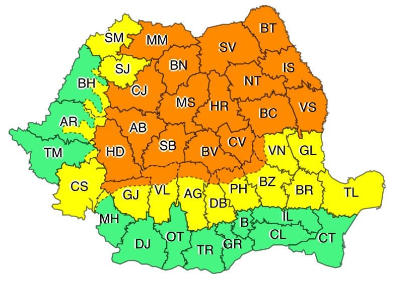 Potrivit precizărilor Administraţiei Naţionale de Meteorologie, intervalul de valabilitate a Codului galben va fi 20 iulie 2021, ora 10:00 – 21 iulie 2021, ora 03:00.