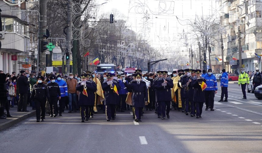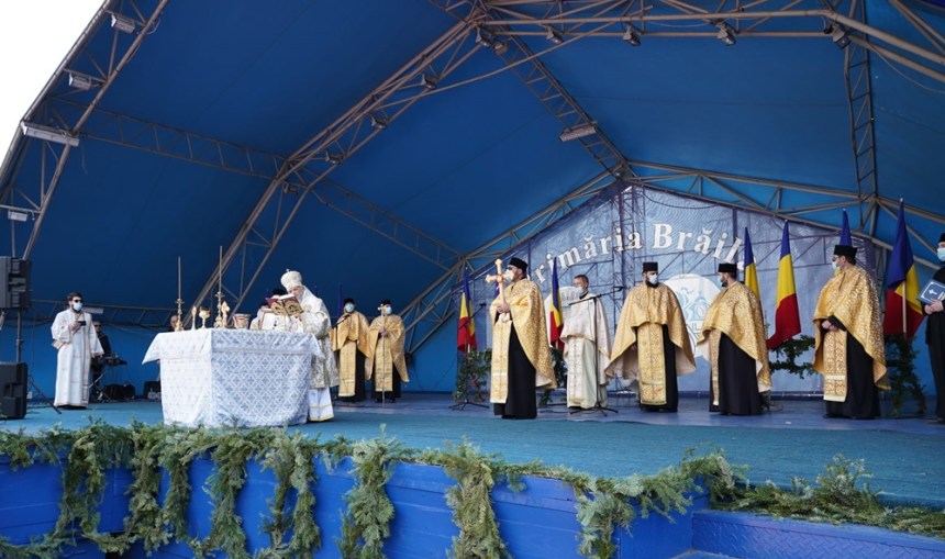 „De la Catedrala ”Naşterea Domnului”, ierarhul Dunării de Jos, împreună cu clerul şi credincioşii brăileni, în dangăt de clopote şi precedaţi de fanfara militară a Garnizoanei Brăila, au pornit, pe Calea Călăraşilor, către faleza Dunării.