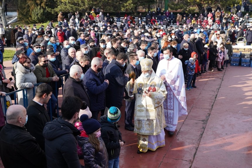 După Sfânta Liturghie şi cuvântul de învăţătură, ierarhul Dunării de Jos a ieşit pe esplanada catedralei unde a stropit cu agheasmă şi a binecuvântat pe toţi credincioşii prezenţi.”, a precizat părintele consilier Rareș Bucur, purtător de cuvânt al Eparhiei Dunării de Jos.