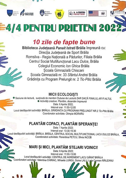 Biblioteca Județeană „Panait Istrati” Brăila s-a alăturat proiectului „4/4 Pentru Prieteni 2022” organizat de Ambasada Statelor Unite ale Americii în România și American Councils for International Education.