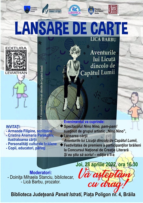 Joi, 28 aprilie 2022, începând cu ora 16:30, brăilenii sunt invitați la lansarea cărții “Aventurile lui Licuță dincolo de Capătul Lumii” semnată de Lică Barbu.