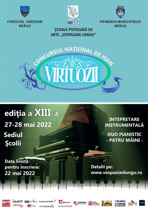 Gigi-Cristian Morozan, managerul Şcolii Populare de Arte şi Meserii „Vespasian Lungu” Brăila, a adresat o invitație tuturor brăilenilor dornici să participe la un concurs de o înaltă valoare: „Vă invităm să participaţi la cea de-a XIII-a ediţie a Concursului Naţional de Pian pentru Copii «Virtuozii» care va avea loc în perioada 27-28 mai 2022, la sediul Şcolii Populare de Arte şi Meserii «Vespasian Lungu» Brăila.”