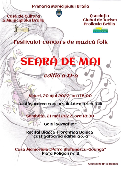 Timp de două zile, 20 și 21 mai 2022, la Casa Memorială “Petre Ștefănescu-Goangă”, va avea loc Festivalul Concurs de Muzică Folk „Seară de Mai”, ajuns la cea de a XI-a ediție.