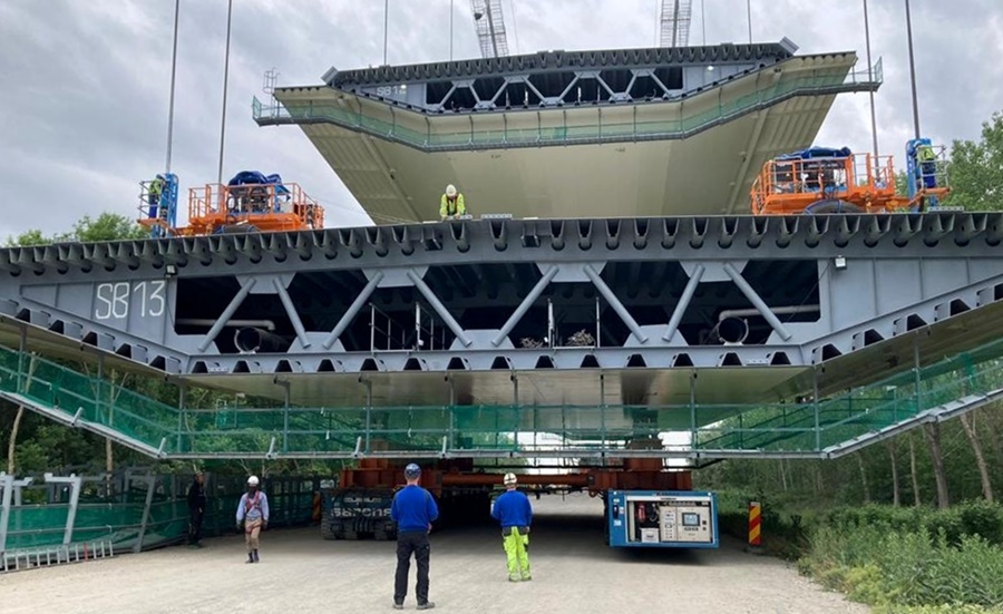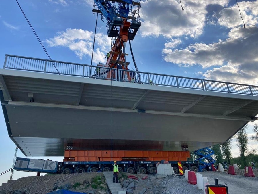 Într-un postare făcută sâmbătă, 28 mai 2022, pe o rețea de socializare, reprezentanții instituției amintite anterior au făcut public un mesaj în care au evidențiat stadiul montării segmentelor tablierului metalic în șantier, pe cele două maluri ale podului.