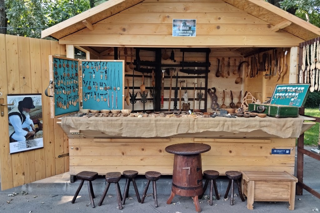 Obiecte din lut și sticlă, lucrate cu mare artă, obiecte croite din blană sau piele, covoare țesute manual la războaie din lemn, împletituri din fibre vegetale, diferite piese vestimentare aparținând portului popular, numeroase obiecte menite să împodobească o locuință și încă multe alte lucruri minunate sunt expuse de meșteșugari și meșteri populari așteptându-și clienții dornici să le aprecieze calitatea inegalabilă specifică tradiției românești.