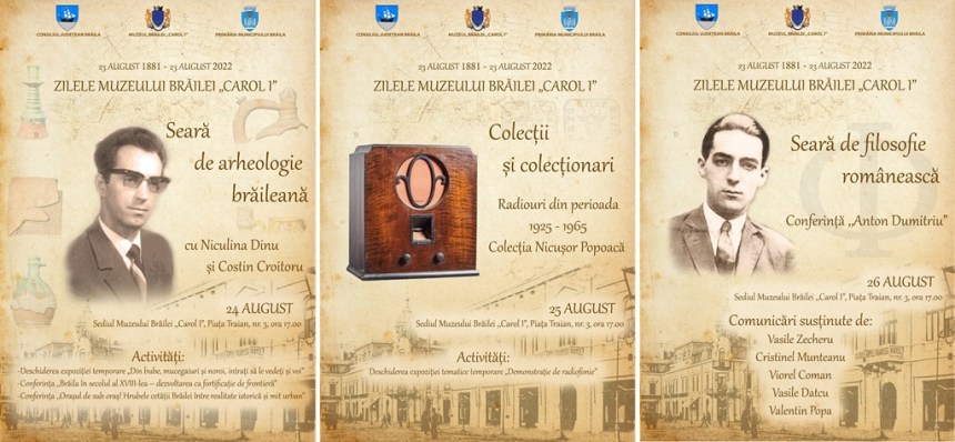 Vineri, 26 august, ora 17:00, la sediul Muzeului Brăilei „Carol I” (Piața Traian, nr. 3), sala „Regele Ferdinand și Regina Maria”: