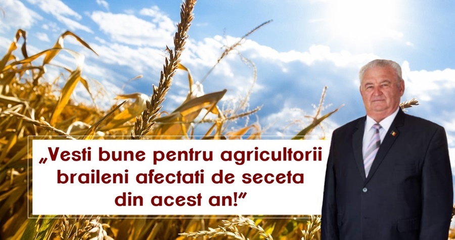 „Vești bune pentru agricultorii brăileni afectați de seceta din acest an! Ministrul PSD al Agriculturii Petre Daea a inițiat un proiect de Ordonanță de Urgență prin care se vor acorda despăgubiri de secetă.”, a anunțat astăzi deputatul social–democrat Nicu Niță.