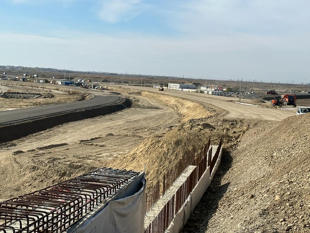 · La sensul giratoriu dinspre Tulcea, se așterne stratul inferior de fundație (balast);