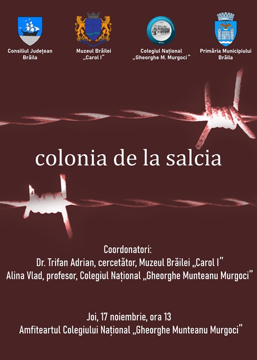 Muzeul Brăilei „Carol I” și Colegiul Național „Gheorghe Munteanu Murgoci” Brăila organizează joi, 17 noiembrie 2022, ora 13:00, în amfiteatrul Colegiului Național „Gheorghe Munteanu Murgoci”, o activitate cu tema „Colonia de la Salcia”.