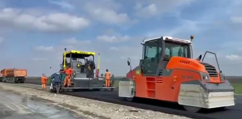 “Antreprenorul român, care a ajuns la un stadiu fizic de 50% al lucrărilor, a început turnarea covorului asfaltic în zona girației de la km 1+524 (conexiune cu drumul de legătură de la Podul Brăila).