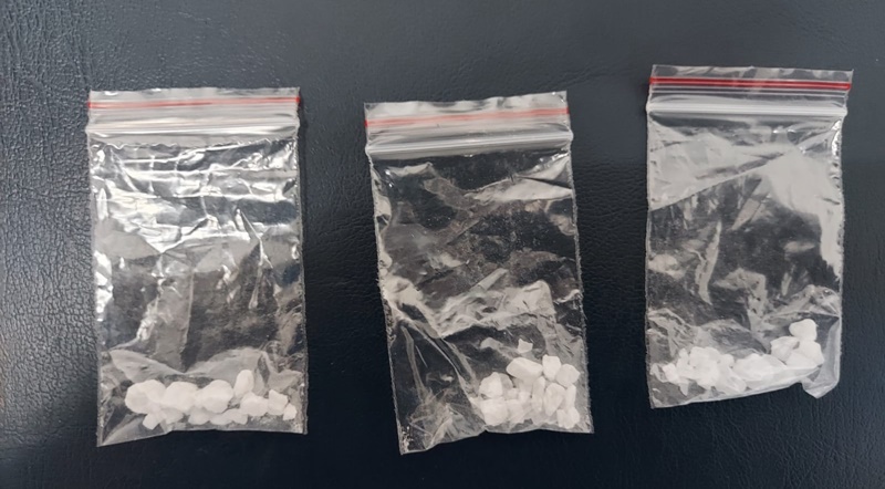 Tânărul devenise suspect prin comportamentul său la vederea autospecialei de jandarmerie, așa că membrii echipajului l-au interceptat și legitimat. În urma controlului corporal, jandarmii au găsit într-unul din buzunarele hainei 3 pliculețe în care se afla o substanță albă tip cristal, susceptibilă a avea efecte psihoactive.