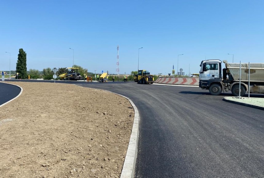 – execuție lucrări de așternere mixturi asfaltice sens giratoriu km 7+950;