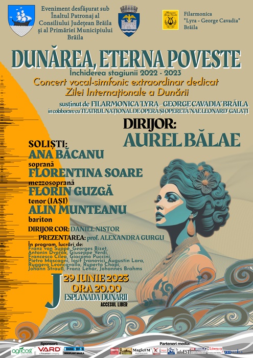 Așadar iubitorii de muzică sunt așteptați pe data de 29 iunie 2023, ora 20:00, în sfânta zi în care sunt prăznuiți pe Sfinții Apostoli Petru și Pavel, la Concertul vocal-simfonic extraordinar “Dunărea, eterna poveste”, eveniment desfășurat sub Înaltul Patronaj al Consiliului Județean Brăila și al Primăriei Municipiului Brăila.