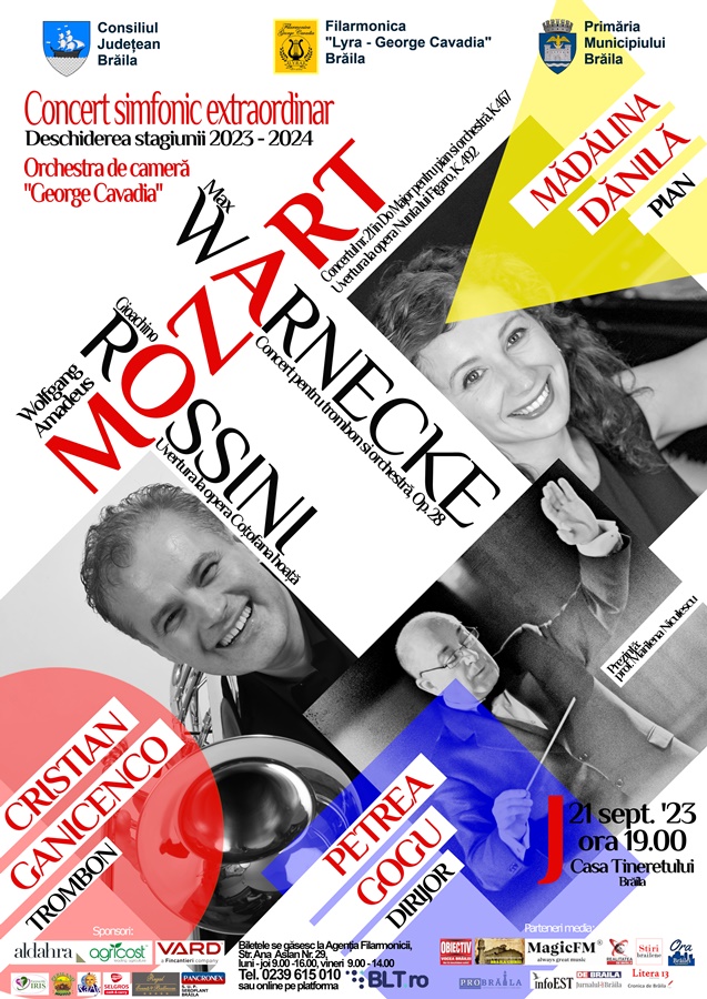 Așadar, joi, 21 septembrie 2023, începând cu ora 19:00, la Casa Tineretului Brăila, va fi susținut Concertul simfonic extraordinar de deschidere de stagiune 2023-2024, organizat de Filarmonica “Lyra-George Cavadia” Brăila împreună cu partenerii săi, Consiliul Județean Brăila și Primăria Municipiului Brăila. Prezentarea va fi asigurată de profesorul Marilena Niculescu.