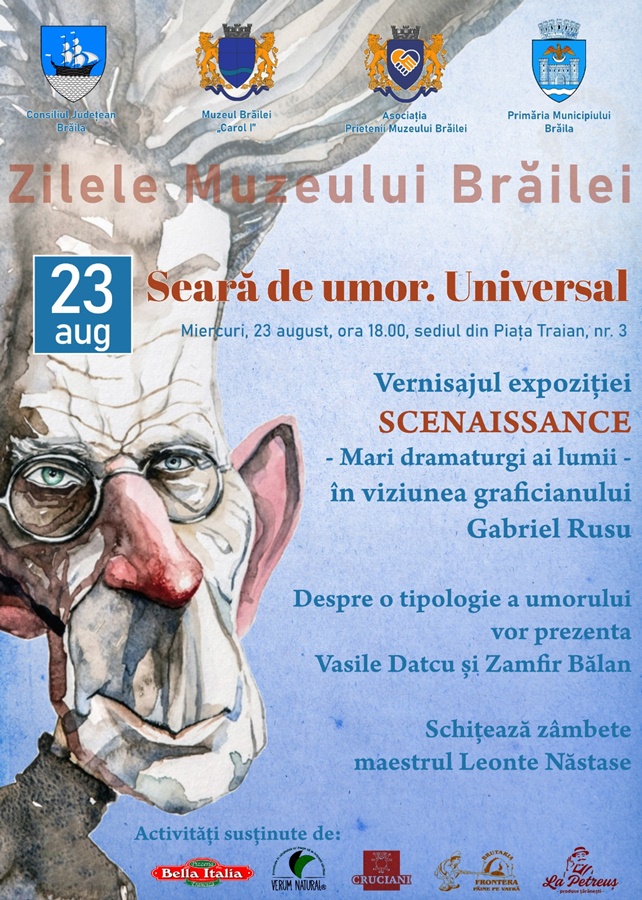 Seară de umor. Universal – ora 18:00, la sediul Muzeului Brăilei „Carol I” (Piața Traian, nr. 3)