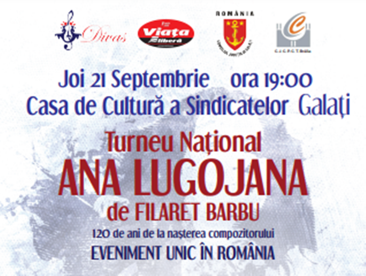 La invitația Asociației Divas și, totodată, în baza parteneriatului intercultural între instituții, Consiliul Județean Brăila prin Centrul Județean pentru Conservarea și Promovarea Culturii Tradiționale Brăila și Primăria Municipiului Brăila vă invită să participați, în data de 21 septembrie 2023, începând cu ora 18:00, la deschiderea Turneului Național pentru promovarea culturii românești, cu opereta de inspirație folclorică, “Ana Lugojana”, eveniment organizat cu ocazia celebrării a 120 de ani de la nașterea dirijorului și compozitorului Filaret Barbu.