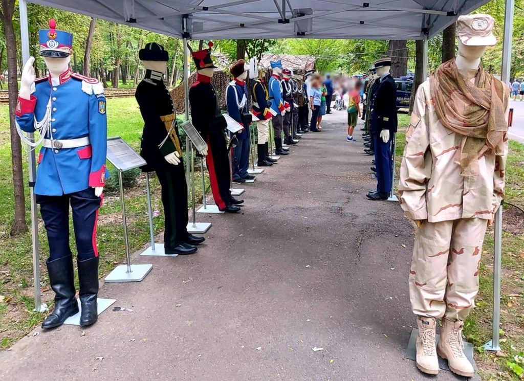 · vor fi expuse 25 de modele de uniforme de epocă și internaționale, aduse din patrimoniul Muzeului Jandarmeriei Române. Expoziția va fi deschisă vineri, de la ora 16:00, iar sâmbătă și duminică de la ora 10:00. Locația va fi în Parcul Monument, la standul nostru, vizavi de Orășelul Copiilor;