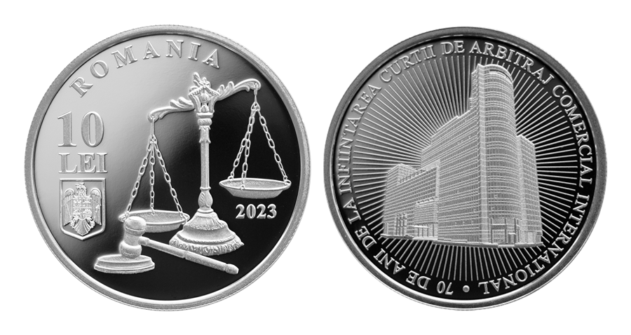 În conformitate cu prevederile Legii nr. 312/2004, privind Statutul Băncii Naţionale a României, începând cu data de 18 septembrie 2023, Banca Naţională a României va lansa în circuitul numismatic o monedă din argint cu tema “70 de ani de la înființarea Curții de Arbitraj Comercial Internațional”.