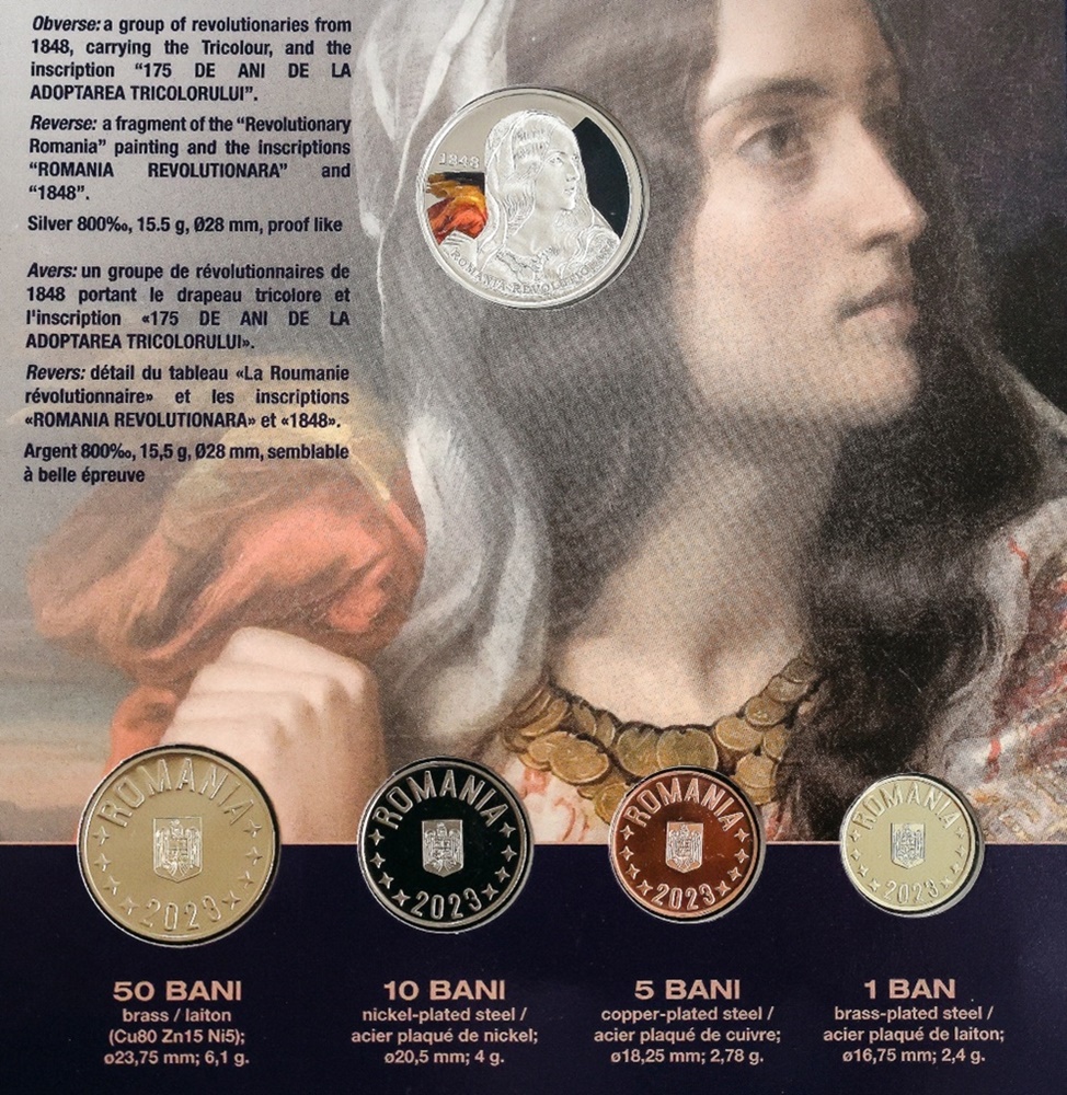 În conformitatecu prevederile Legii nr. 312/2004 privind Statutul Băncii Naţionale a României, începând cu data de 25 septembrie 2023, Banca Naţională a României va lansa în circuitul numismatic un set de monetărie cu tema “175 de ani de la adoptarea tricolorului”.