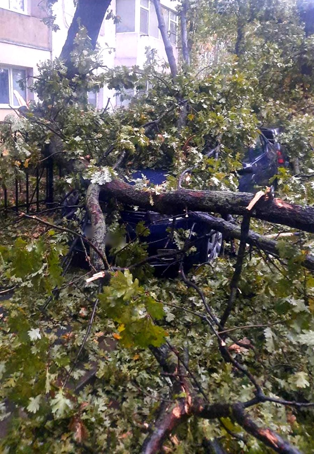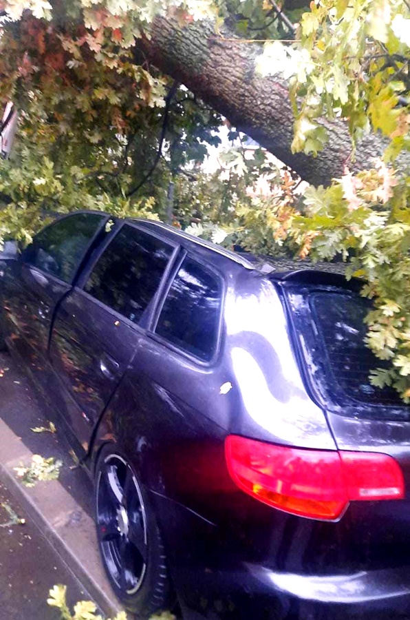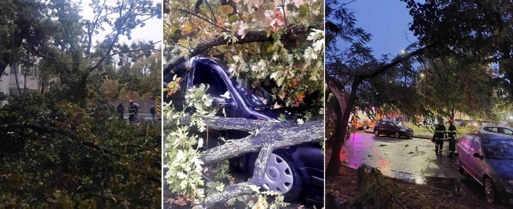 Copacul căzut pe Aleea Cocorilor a avariat trei autoturisme parcate. Nu s-au înregistrat victime.