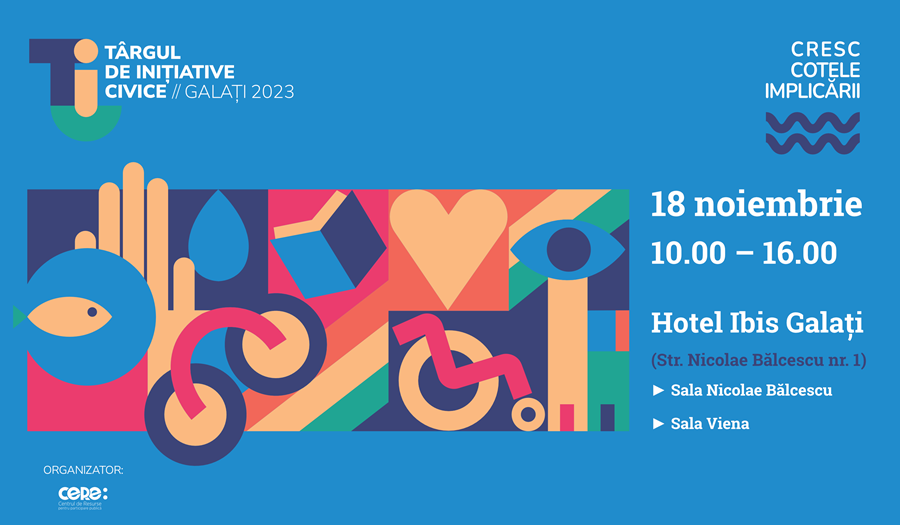 CeRe: Centrul de Resurse pentru participare publică organizează pe 18 noiembrie 2023, “Târgul de inițiative civice” de la Galați. Evenimentul va avea loc la Hotelul Ibis, între orele 10.00 – 16.00, în sălile “Nicolae Bălcescu” și “Viena”, iar intrarea va fi liberă.