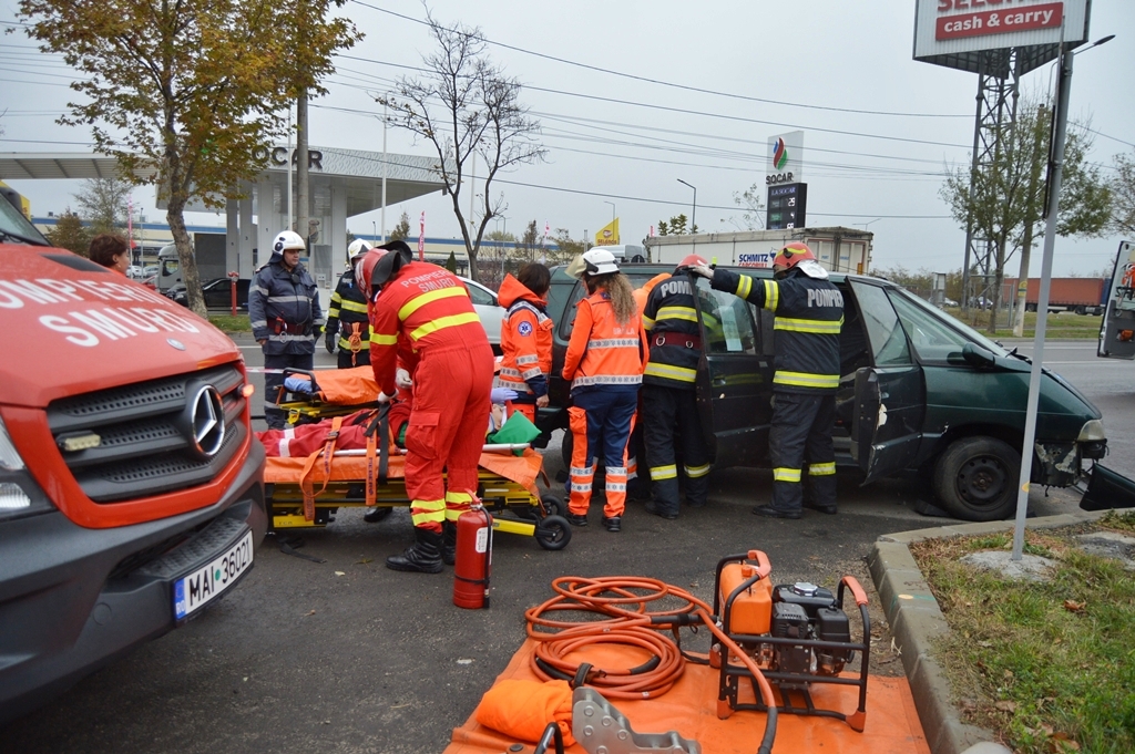 În cazul celui de-al doilea scenariu, pe timpul operaţiunilor de intervenţie pentru limitarea și lichidarea incendiului, comandantul intervenţiei a fost informat despre producerea unui accident rutier pe Șoseaua Râmnicu Sărat, fiind implicat un autoturism, iar în urma impactului au rezultat două persoane încarcerate, în stare gravă. Echipajele de intervenție au acționat pentru descarcerarea victimelor, acordarea primului ajutor medical și transportul acestora la spital.