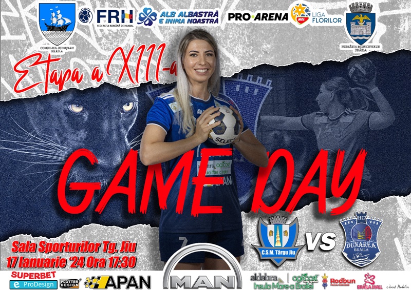 Pe data de 17 ianuarie 2024, este programat meciul dintre CSM Tg. Jiu și HC Dunărea Brăila, contând pentru etapa a XIII-a, din cadrul Ligii Florilor Mol, tur competițional, sezon 2023/2024.
