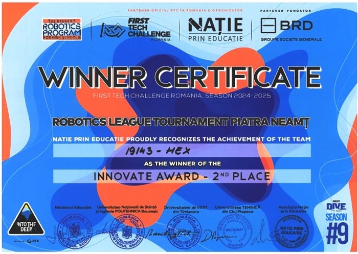 Premiul “2 INNOVATE” a fost câștigat în urma analizei documentației tehnice și a prezentărilor dinamice făcute de membrii echipei pe parcursul celor 5 sesiuni de întrebări și răspunsuri, precum și în 6 meciuri desfășurate în cele 3 zile de concurs.